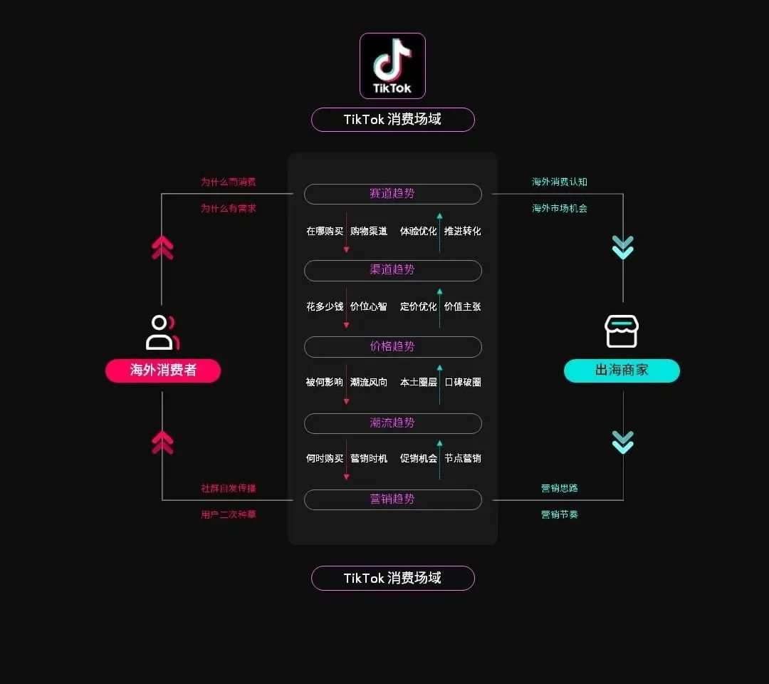 When you open the white paper, you can find that the research idea of the report is around the "double-cycle value system". This value system takes TikTok consumer field as the core, and directly connects overseas consumers with overseas merchants through the five major trends of track, channel, price, trend and marketing.